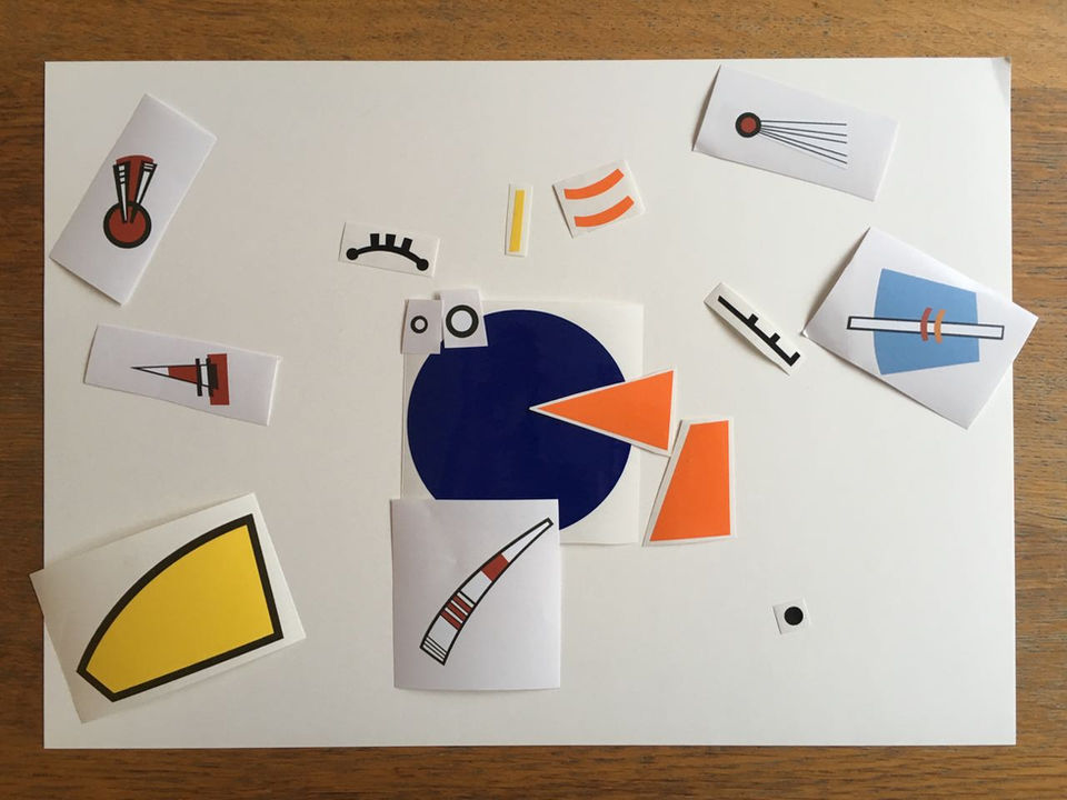 Each of us was asked to re-compose Dima’s art using the same deconstructed elements supplied – shapes, colours and form.
